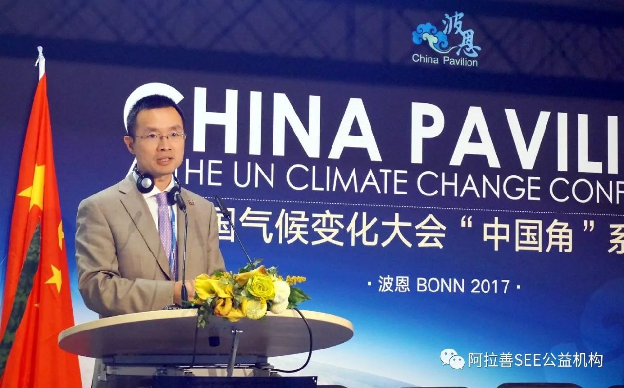2017年11月11日,在德国波恩举行的第23届联合国气候变化大会期间,阿拉善SEE主办“绿色供应链行动—中国企业联合助力碳减排”的主题边会。